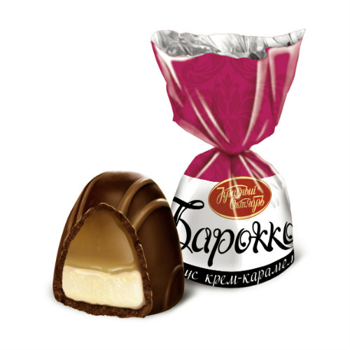Конфеты Барокко вкус крем-карамель производства Красный Октябрь можно купить оптом с доставкой по Москве, Подмосковью и ЦФО. Низкая цена обусловлена отсутствием посредников при наличии прямого договора с производителем.  Все актуальные сертификаты в наличии. Минимальный заказ: 1 коробка