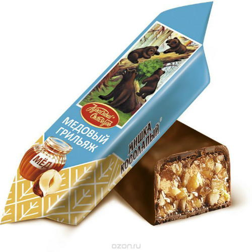 Конфеты Мишка косолапый Медовый грильяж производства Красный Октябрь можно купить оптом с доставкой по Москве, Подмосковью и ЦФО. Низкая цена обусловлена отсутствием посредников при наличии прямого договора с производителем. Все актуальные сертификаты в наличии. Минимальный заказ: 1 коробка