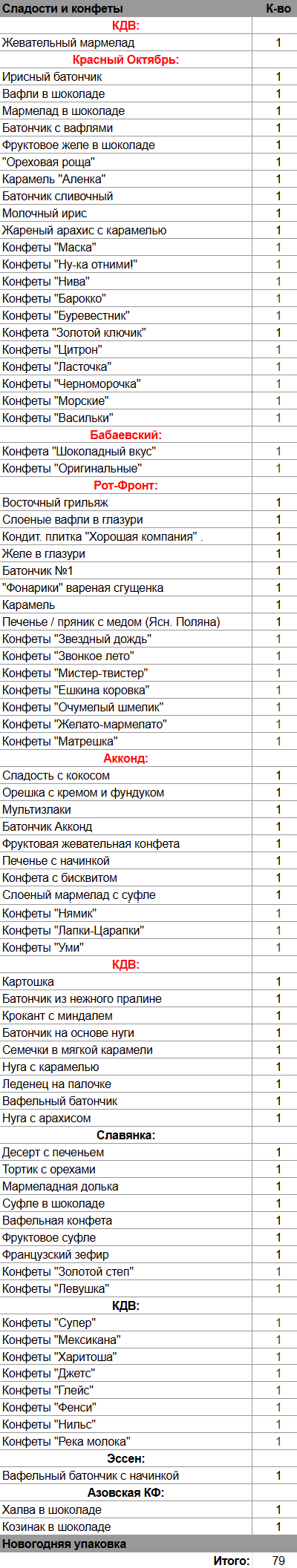 Кол-во сладостей: 79 шт.