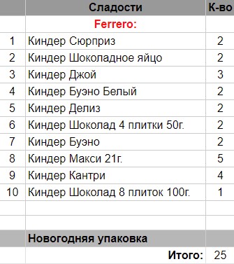 Кол-во сладостей: 25 шт.