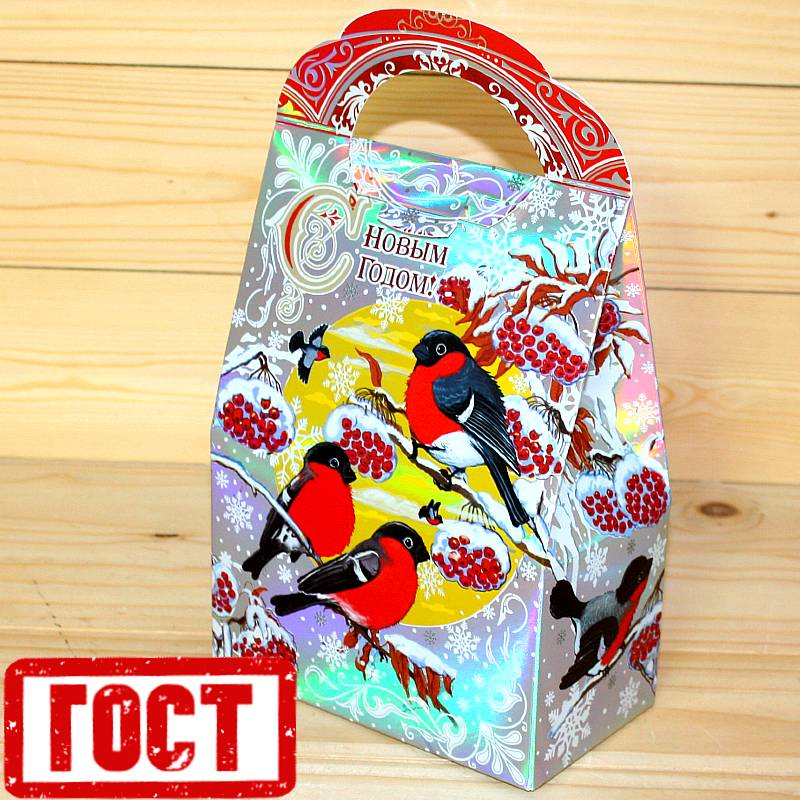 Молочный шоколад "Аленка" (1 шт), Батончик с начинкой "Аленка" (1 шт), Вафли в шоколаде (1 шт),Трюфели (1 шт), Шоколадка "Аленка" (1 шт), Фундук в шоколаде (1 шт), Печенье / пряник с медом (1 шт), Грильяж в шоколаде (1 шт), Драже в шоколадной глазури (1 шт), "Птичье молоко" (1 шт), Халва в шоколаде (1 шт), Батончик №1 (1 шт), Леденцовый символ года (1 шт)