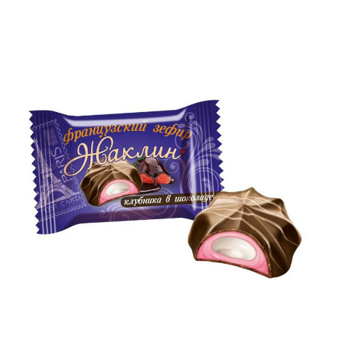 Жаклин французский зефир Клубника в шоколаде производства фабрики Славянка можно купить оптом с доставкой по Москве, Подмосковью и ЦФО. Низкая цена обусловлена отсутствием посредников при наличии прямого договора с производителем. Все актуальные сертификаты в наличии. Минимальный заказ: 1 коробка